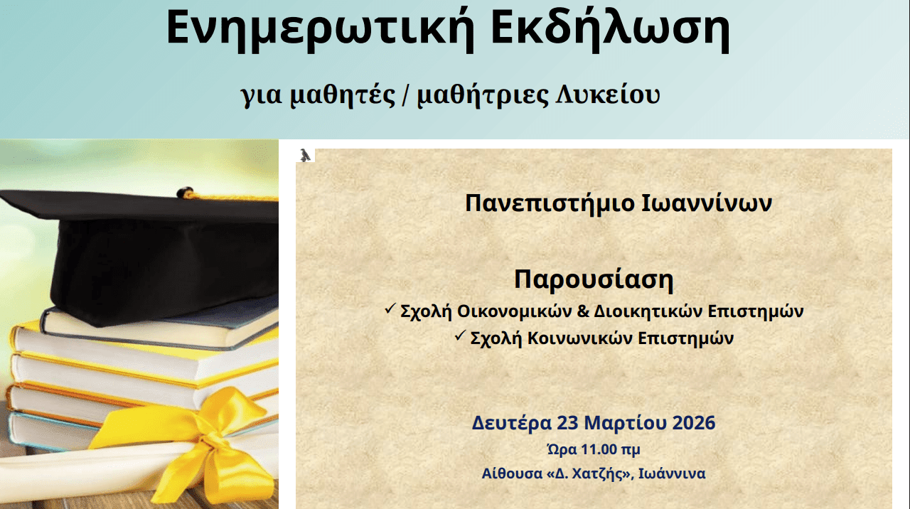 Καλώς ήλθατε στη Σχολή Οικονομικών και Διοικητικών Επιστημών του Πανεπιστημίου Ιωαννίνων!